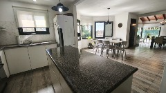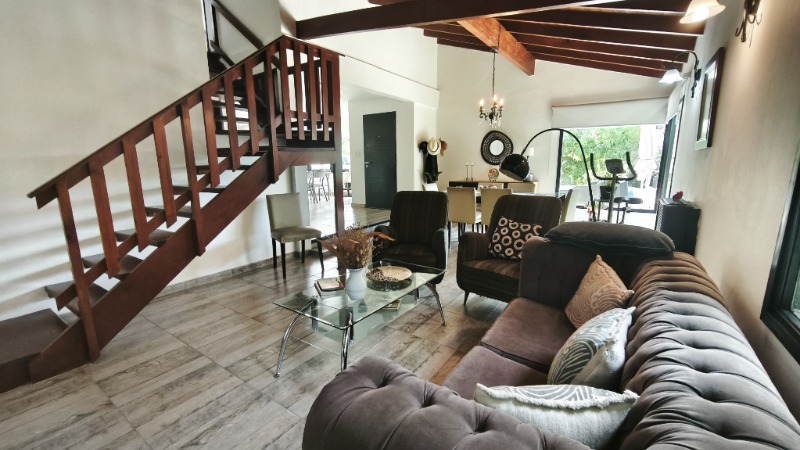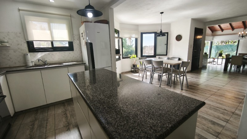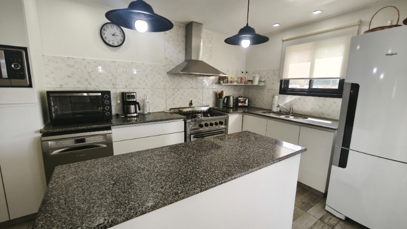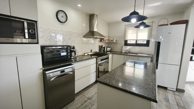 En planta baja nos encontramos con: Amplio living comedor, comedor diario, gran cocina moderna con isla, dormitorio con placard, baño completo, lavadero, cochera cubierta para dos autos y descubierta para otros dos.
