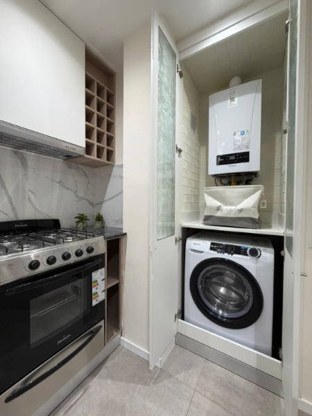 Living comedor apaisado, cocina integrada con barra desayunadora y doble circulacion con espacio de lavadero.