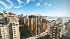 Ubicado en la Av. Colón entre Sarmiento y Alsina. A una cuadra del mar y dos del centro comercial Güemes. Zona Plaza Colón. En el emblematico edificio Palacio Cosmos, departamento de tres ambientes al frente con vista panoramica a la ciudad y al mar. Living comedor amplio con balcon integrado con vista a la ciudad y al mar, cocina separada con espacio de lavadero y toillete, dos dormitorios completos con placard y baño completo. El Baño y la cocina se encuentran reciclados. El edificio cuenta con seguridad 24hs, 6 ascensores y 1 montacargas, y grupo electrogeno para el abastecimiento de la luz en caso de corte. Cochera cubierta.