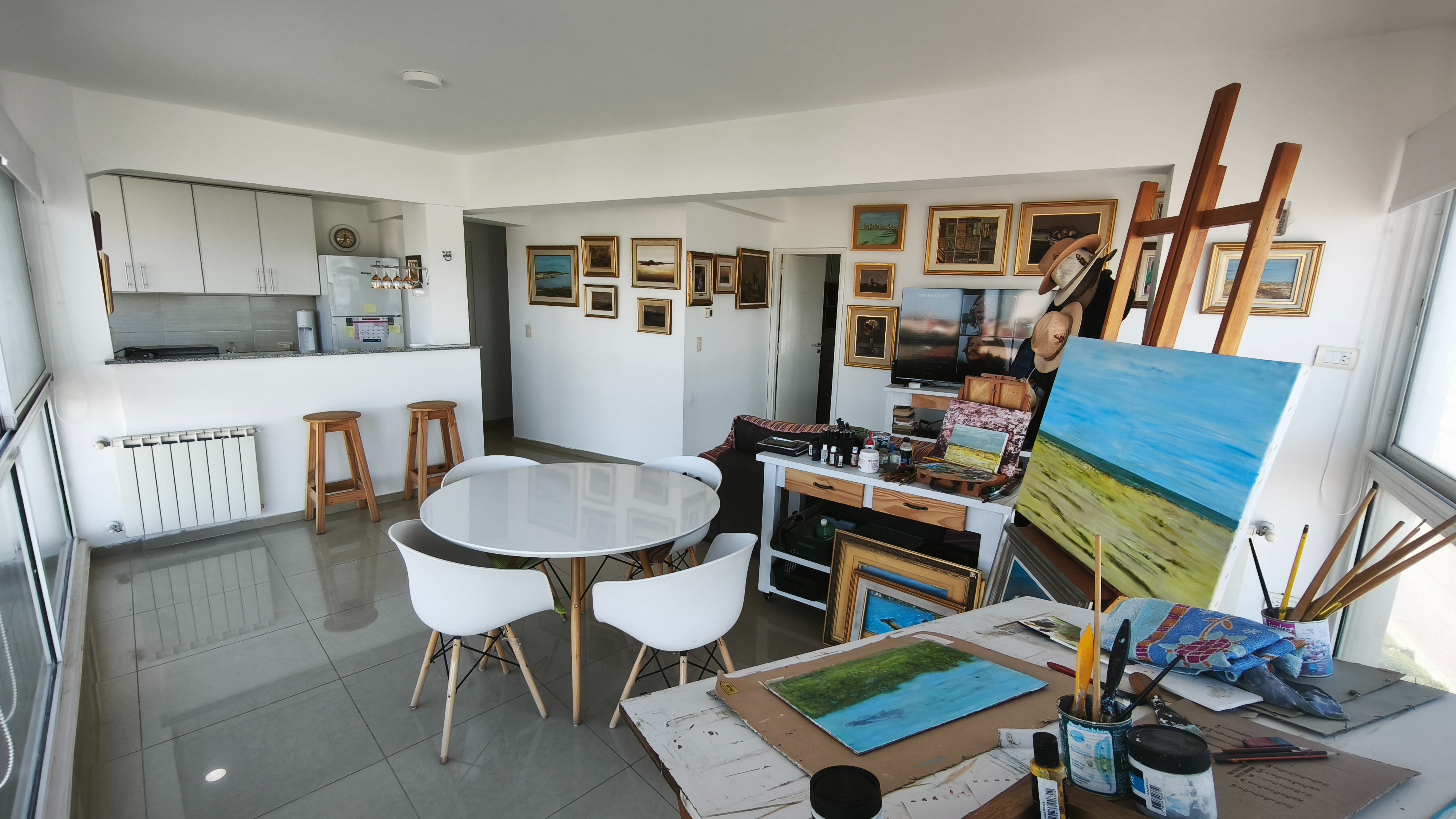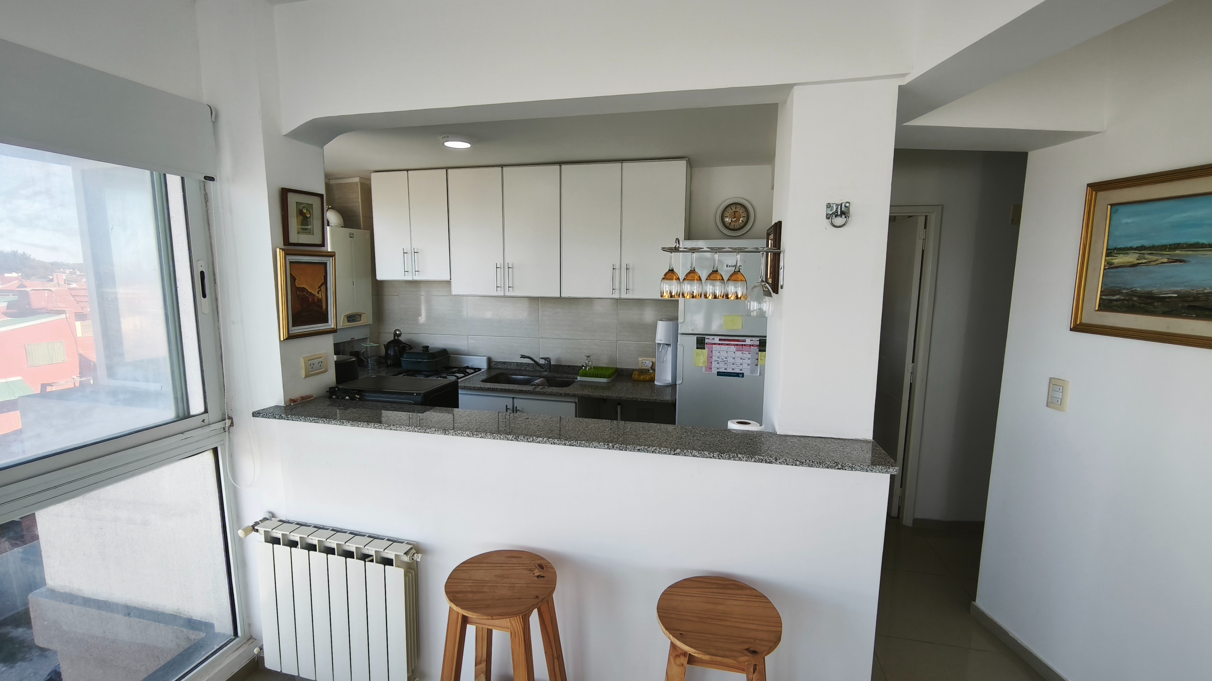 Living comedor amplio con vista plena al mar, cocina semi integrada y toilette de recepción.