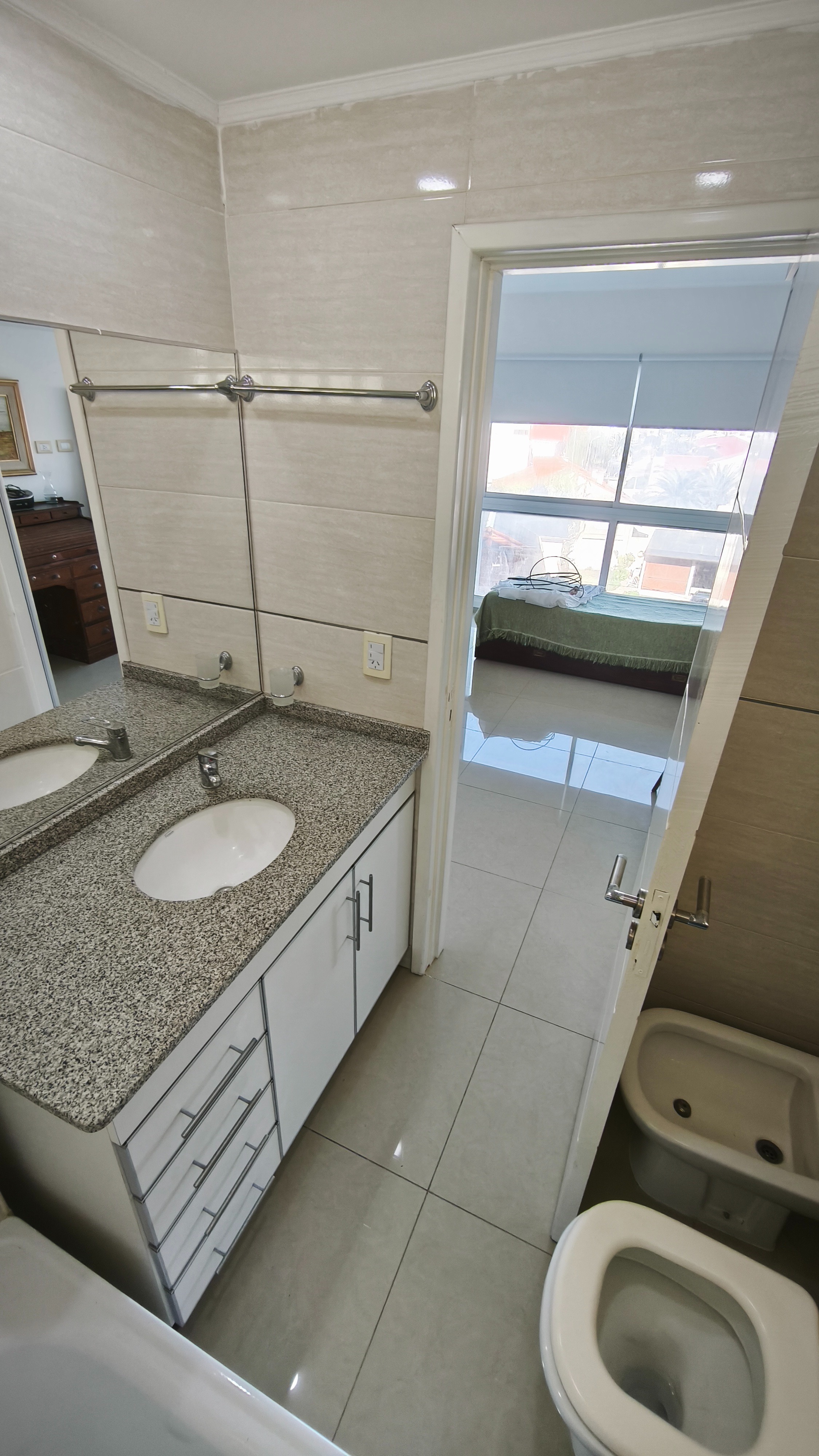 Dos dormitorios en suite con baño completo y placard. Ambos con vista al mar.
