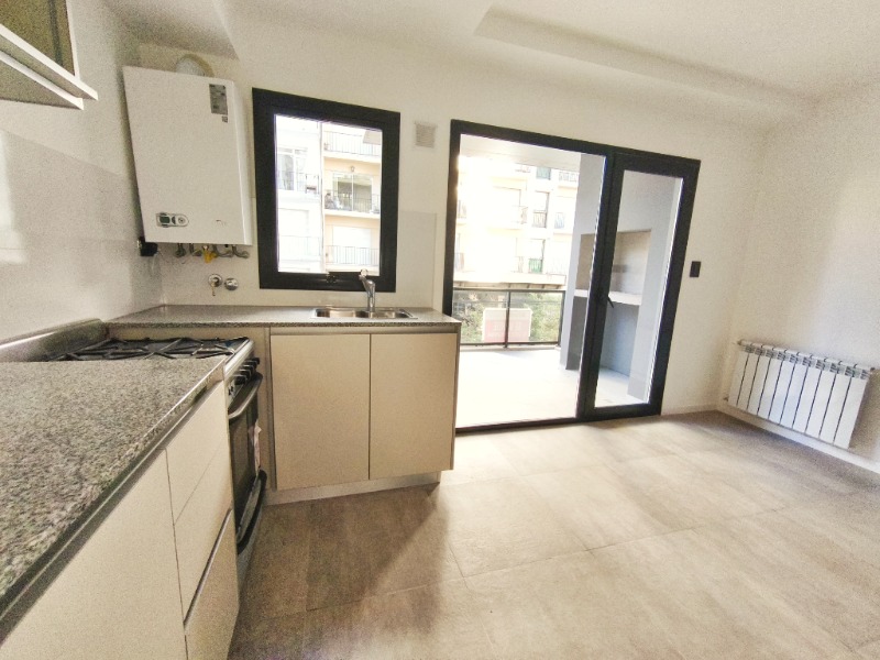 Departamento a estrenar de dos ambientes al frente con balcon con parrilla y cochera cubierta.