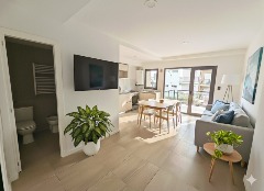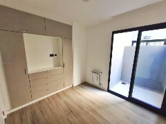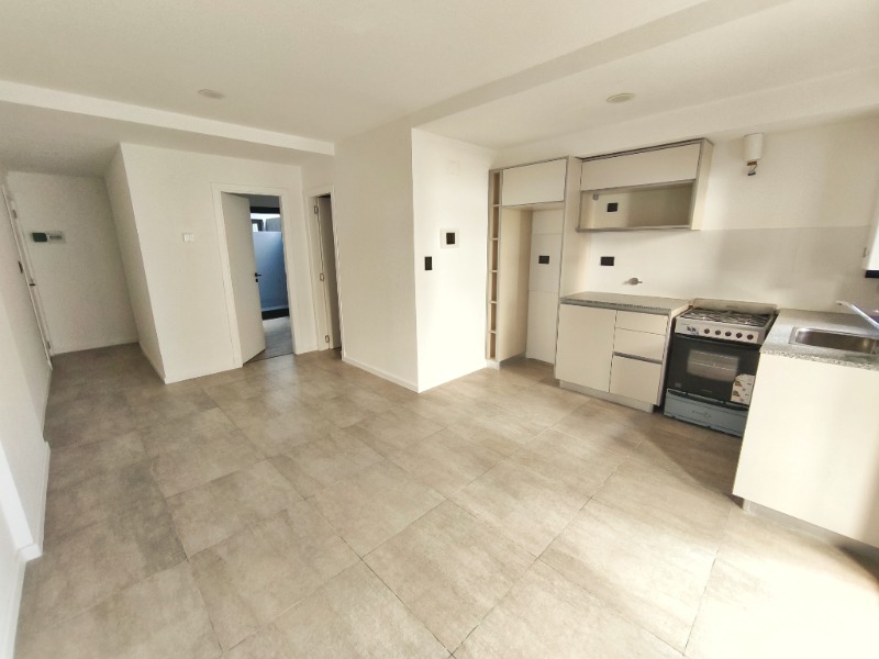 Living comedor con cocina integrada, balcon con parrilla, baño completo, dormitorio al contrafrente con placard y salida al patio.