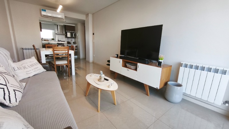 Departamento de categoría de dos ambientes al frente con balcón aterrazado, cochera y baulera.