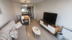 Living comedor amplio con balcón, cocina con espacio de lavarropas integrado por barra, toilette de recepción, dormitorio con placar y baño en suite con jacuzzi.