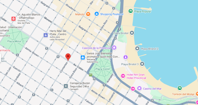 Ubicado en el Edificio Maral 22, en la calle Corrientes entre Av. Colón y calle Almirante Brown. A dos cuadras de Plaza Colón y a cuatro cuadras de Plaza Mitre.