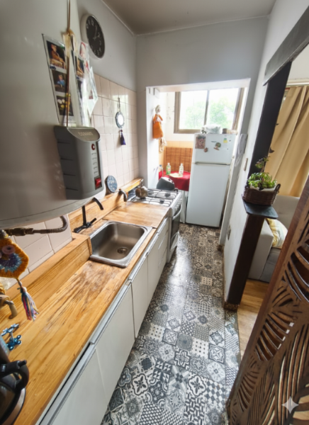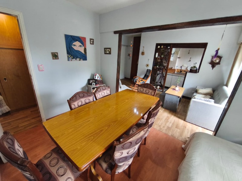 Living comedor con balcón y cocina semi integrada con lavadero, dormitorio integrado como comedor, dormitorio amplio y baño completo.