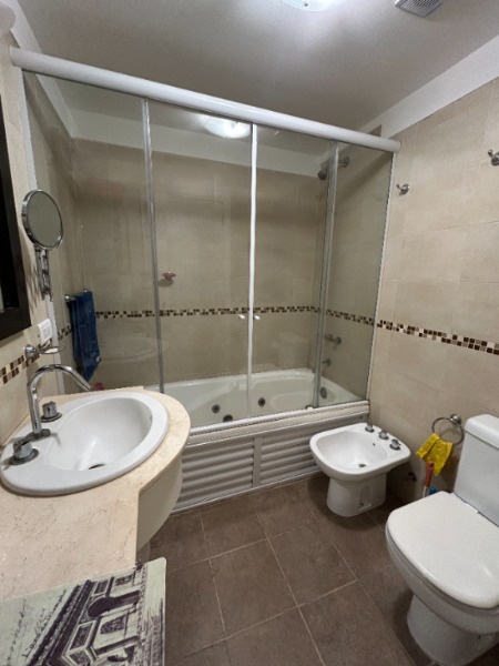 Semipiso de tres ambientes al frente con cochera y baulera, con balcones a la calle y al contrafrente.