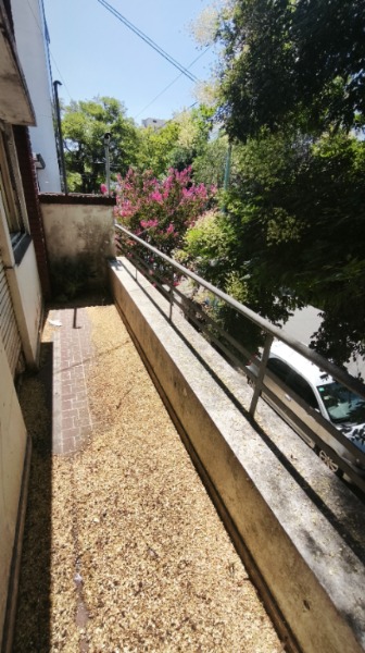 PH independiente de tres ambientes al frente con cochera y pequeño patio en dos plantas.
